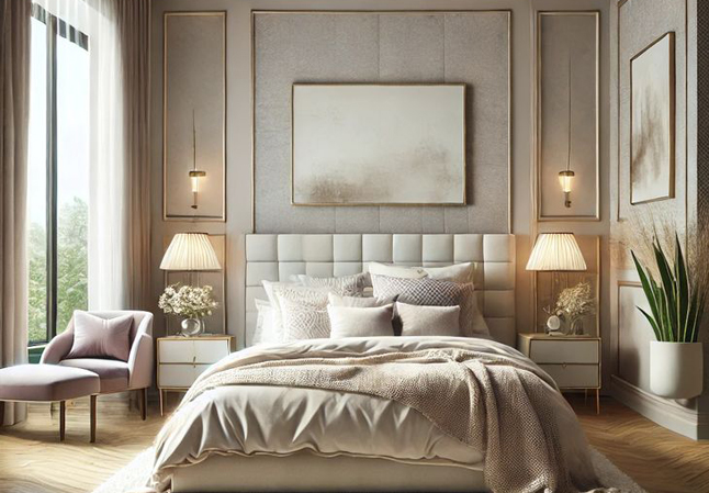 • Contemporary Master Bedroom Design with King-Size Upholstered Bed