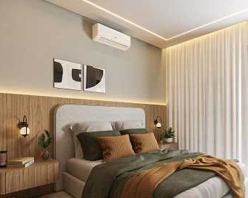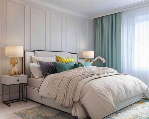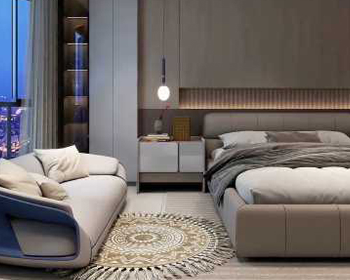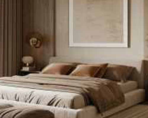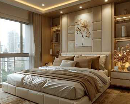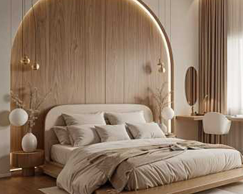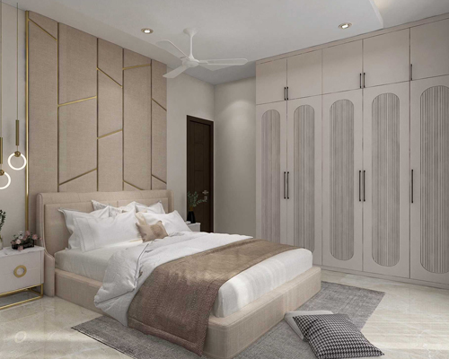 Contemporary Master Bedroom Design with Cream Fabricated Wall Panel