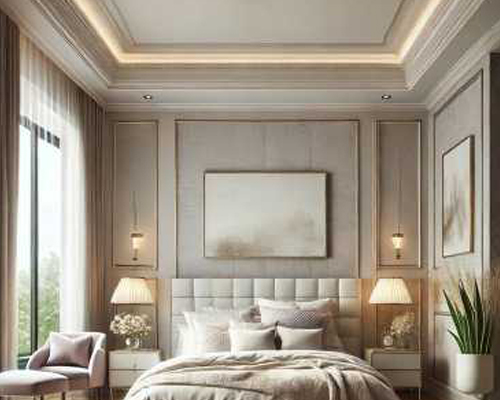Contemporary Master Bedroom Design with Elegant False Ceiling