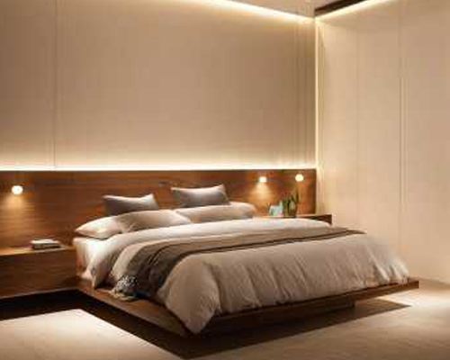 Contemporary Master Bedroom Design with Sleek Wooden Wall Panel