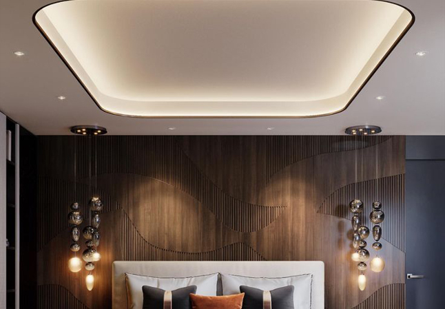 • Modern False ceiling design with curved inverted edges
