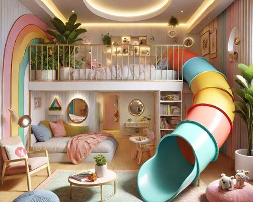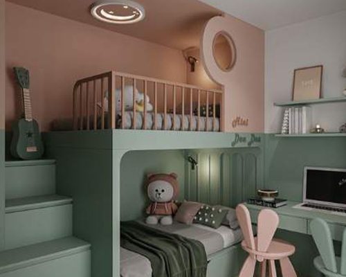 Aesthetic Kid room design with Stair for Bunk bed on wooden Structure