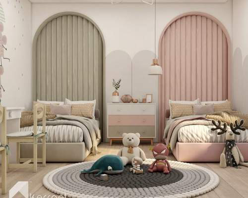 Modern Boy & Girl Bedroom Design with Upholstered Headboard Back Panel