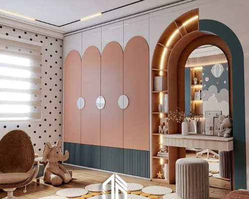 Modern Teen Girls Bedroom Design For Wardrobe and Dressing Table