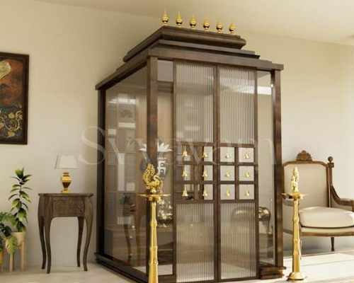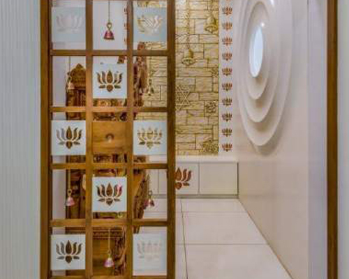 Traditional Mandir Partition / Entry Panel With Glass Finish