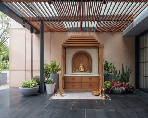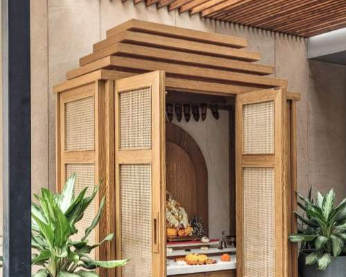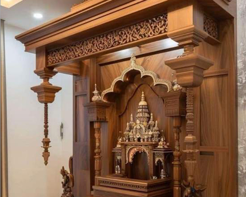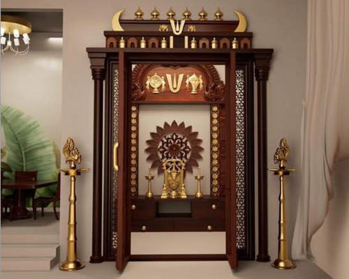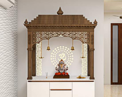 Open Pooja Unit With Wooden Structure & A wooden back panel