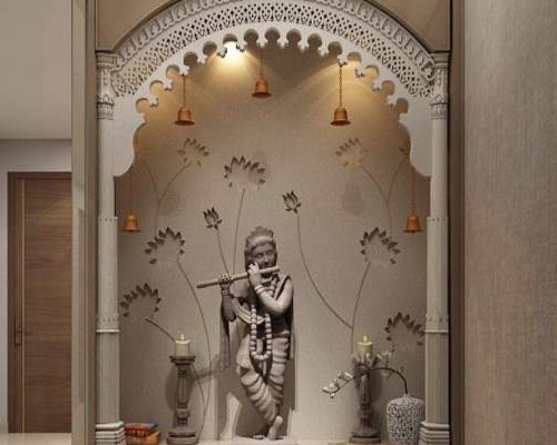 Traditional Mandir Design in Carved with Cement and Marble Finish