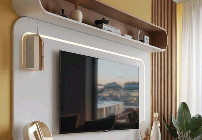 Unique Tv Unit design with Integrated light in the wooden back panel