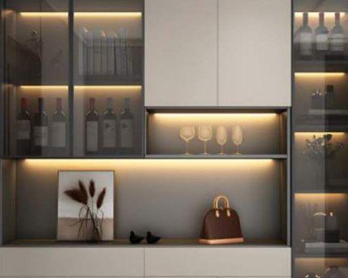 Modern Wardrobe design with Arched Display and Tinted glass Finish