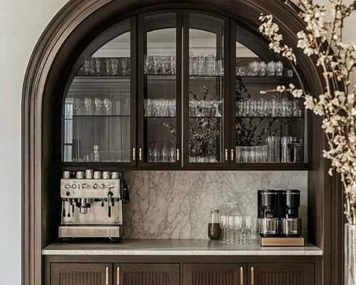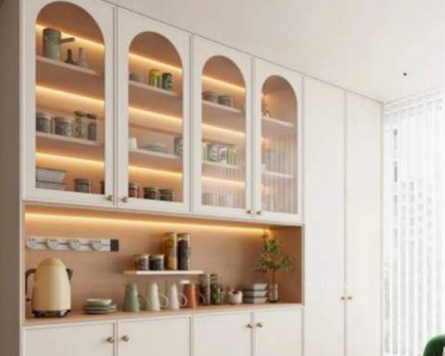 Contemporary Arched Crockery Unit Design with Grooved shutters
