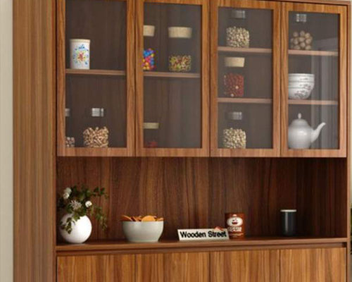 Persian Walnut Crockery Unit Design with Glass Shutters
