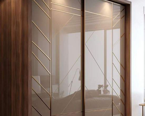 Modern Wardrobe design with Glass Doors in Suede Laminate Finish
