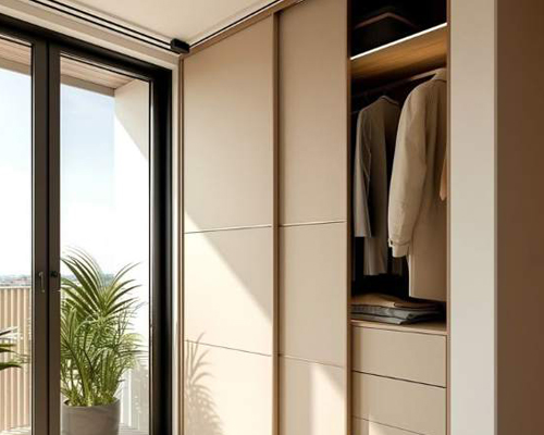 Contemporary Wardrobe Design with Suede Laminate Finish and Display unit