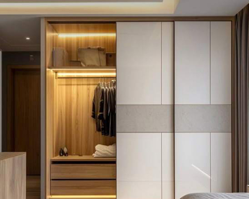 Contemporary Straight Wardrobe design in Suede Laminate Finish