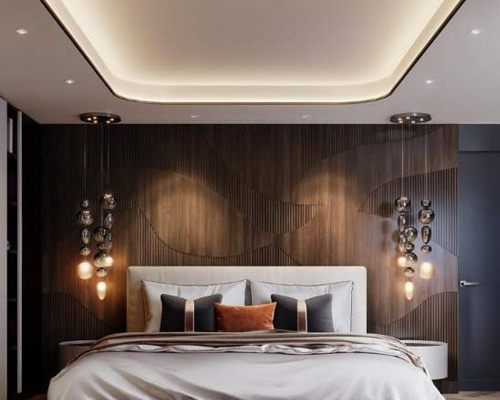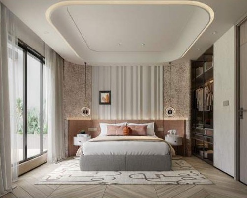Contemporary Master Bedroom Design with Elegant False Ceiling