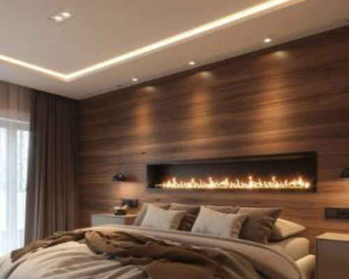 Contemporary Master Bedroom Design with Laminate Finish wood Panel