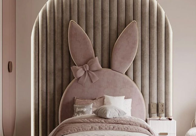 Modern Teen Girls Bedroom Design with Upholstered Headboard Queen Bed