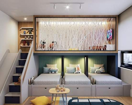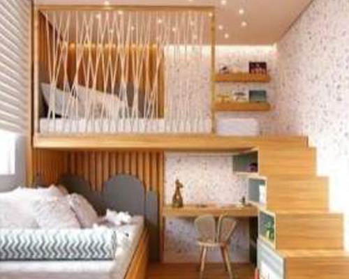 Aesthetic Kid room design with Stair for Bunk bed on wooden Structure