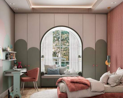 Modern Teen Girls Bedroom Design For Wardrobe and Dressing Table
