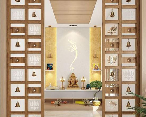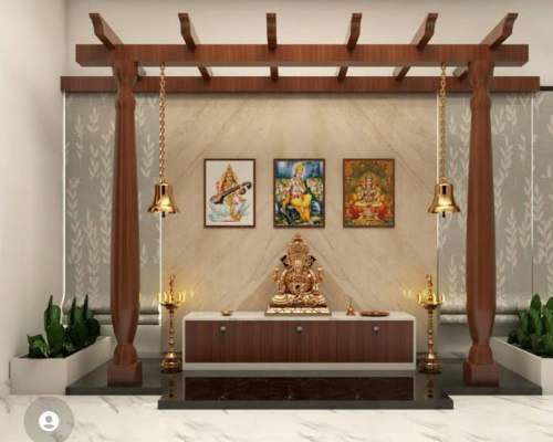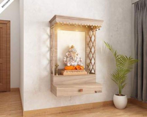 Open Pooja Unit With Wooden Structure & A wooden back panel
