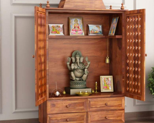 Hand Carved Pooja Unit With Laminate finish & Storage