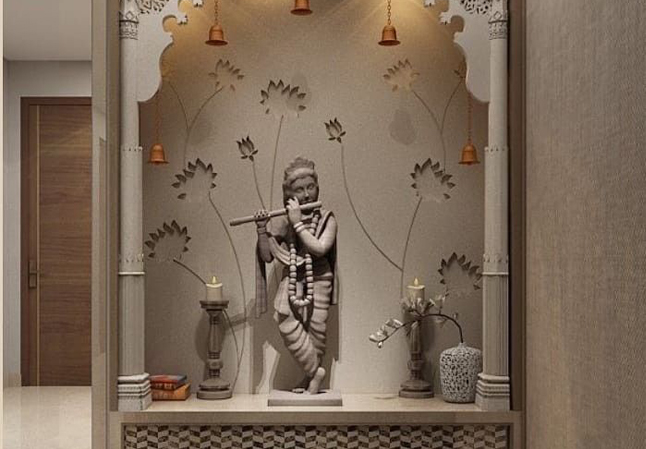• Hand Carved Pooja Unit With Laminate finish & Storage
