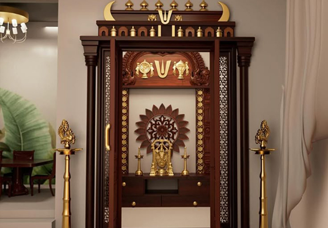 • Traditional Pooja Unit carved inside wall with wooden structure