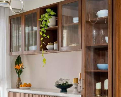 Persian Walnut Crockery Unit Design with Glass Shutters