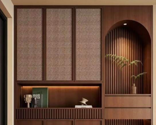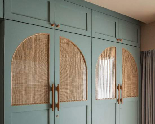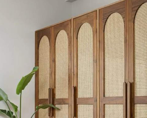 Contemporary Straight Wardrobe design with Cane Finish & Wooden Louvers