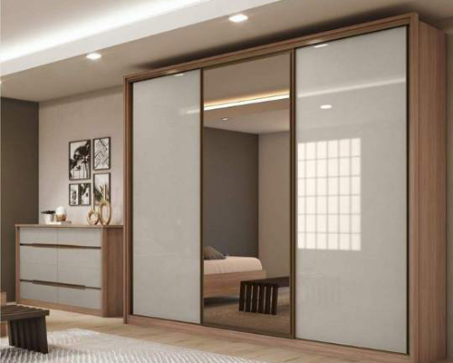 Modern Wardrobe design with Sliding Door in Glossy Laminate finish