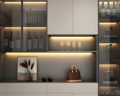 Modern Wardrobe design with Arched Display and Tinted glass Finish