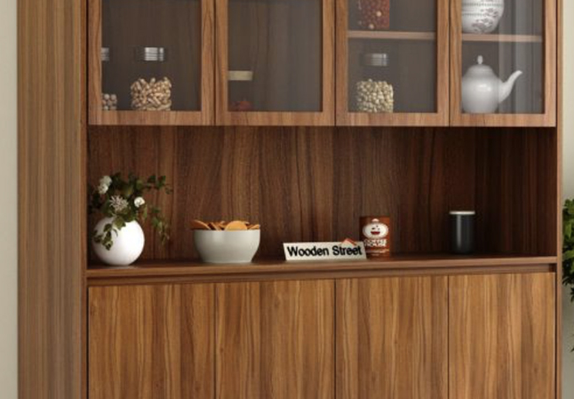 • Contemporary TV unit design in Wooden Louvers and Wall paneling with display unit
